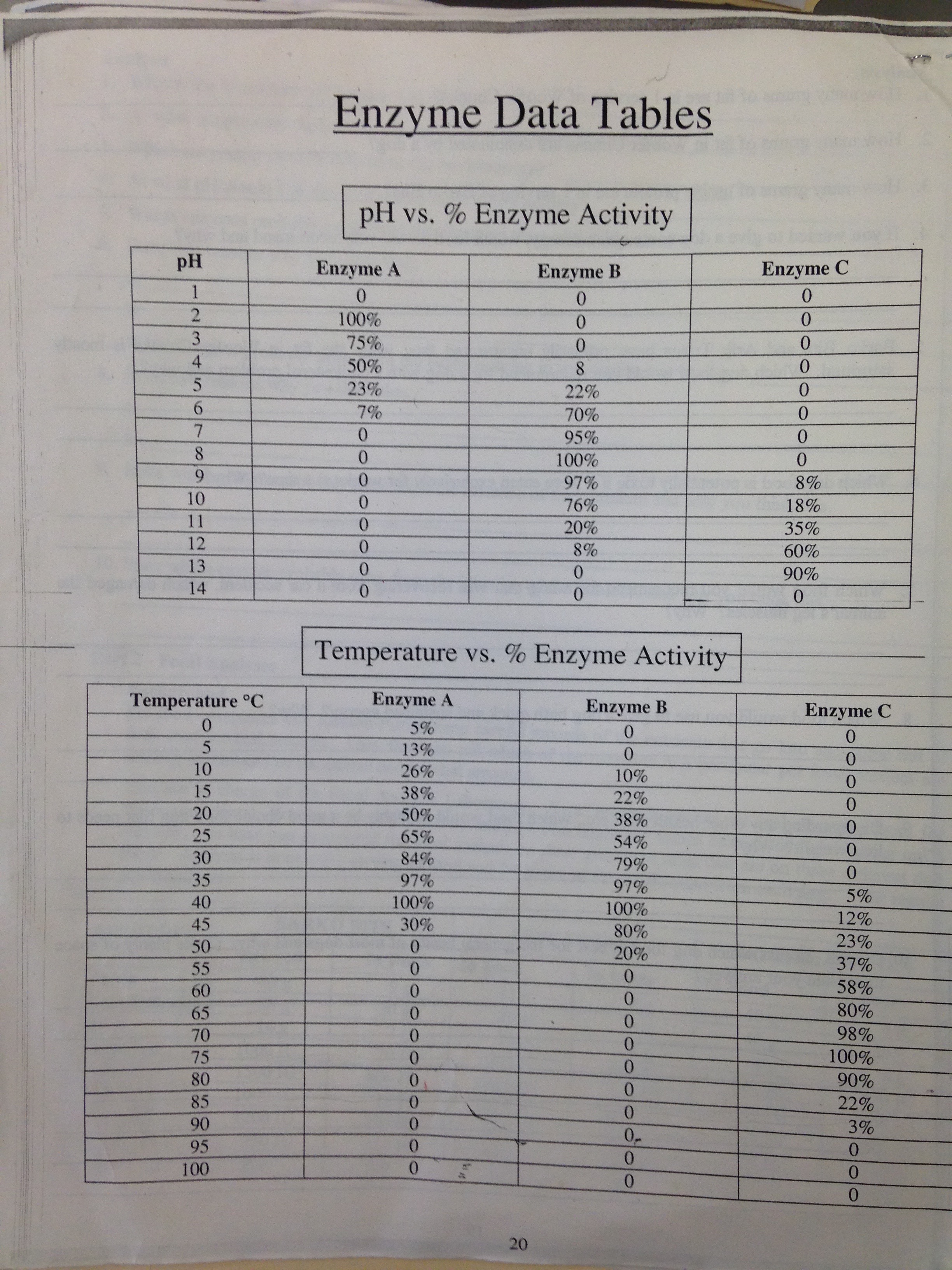 For the two graphs,temperature goes on the X axis on one graph, pH on the X on the other graph. Is that enough information?