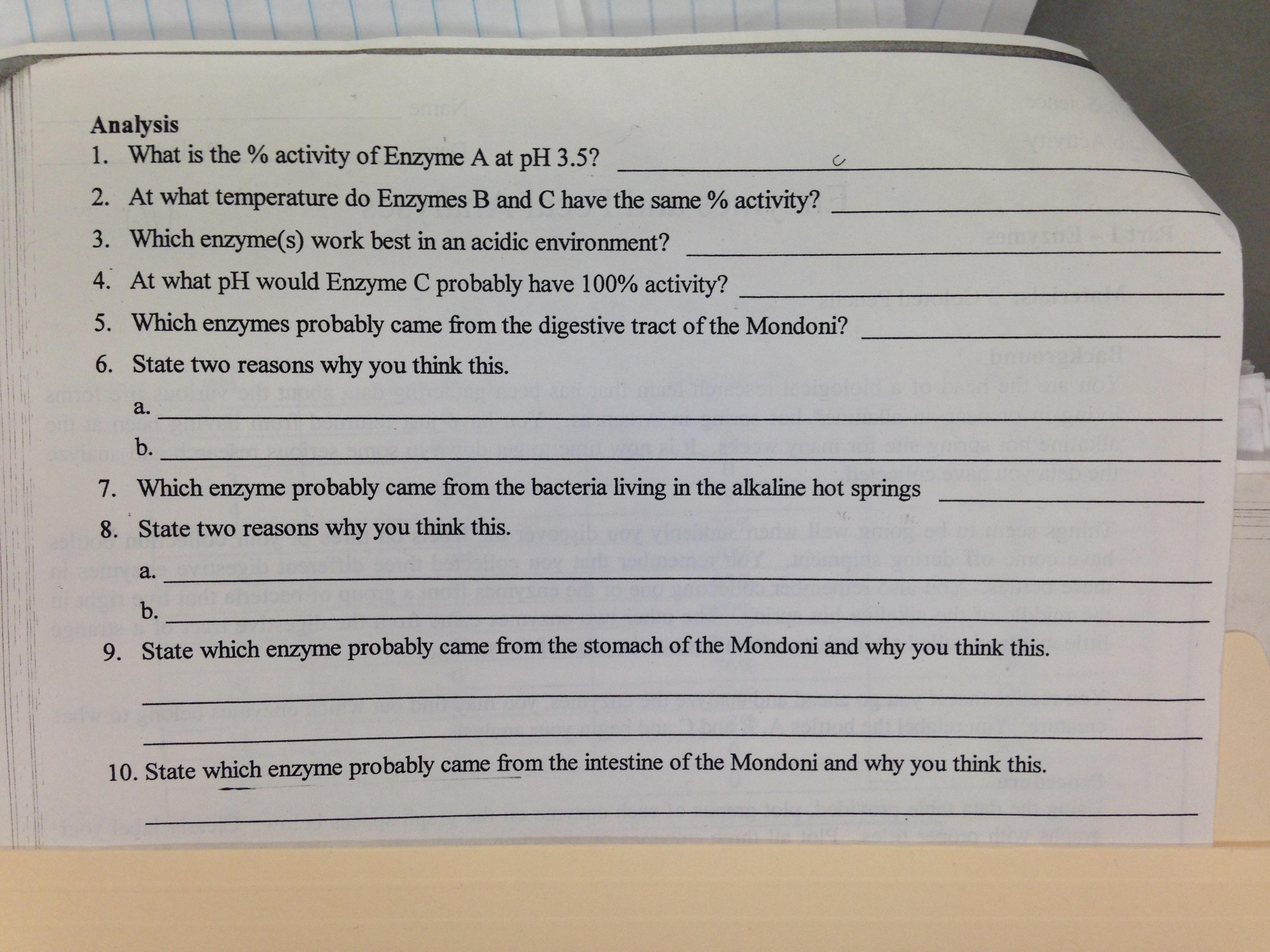 schoology 7.2 due Tues night, enzyme graphs due Wednesday